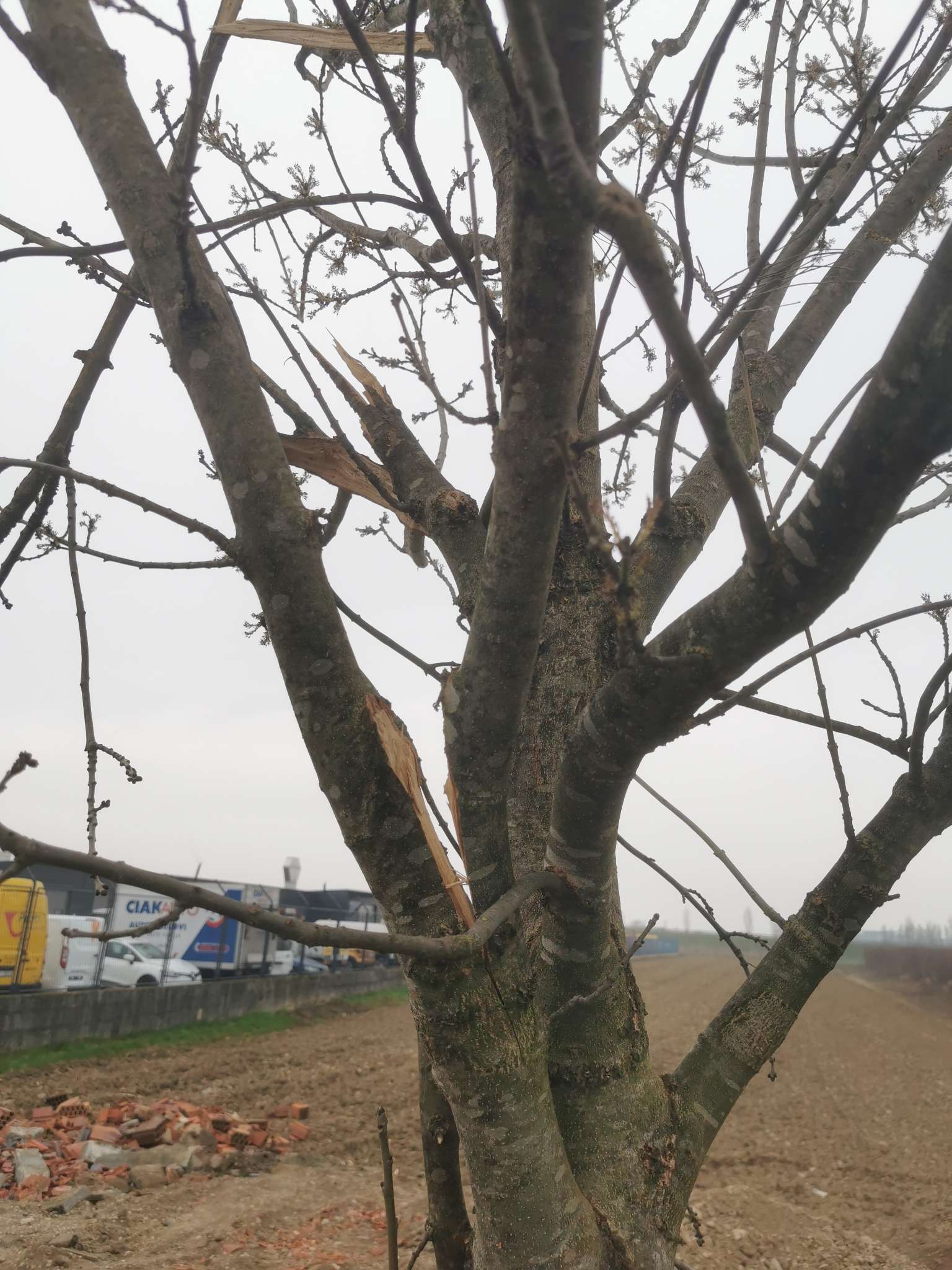 Slomljene grane na stablu u drvoredu. Potrebno sanirati.