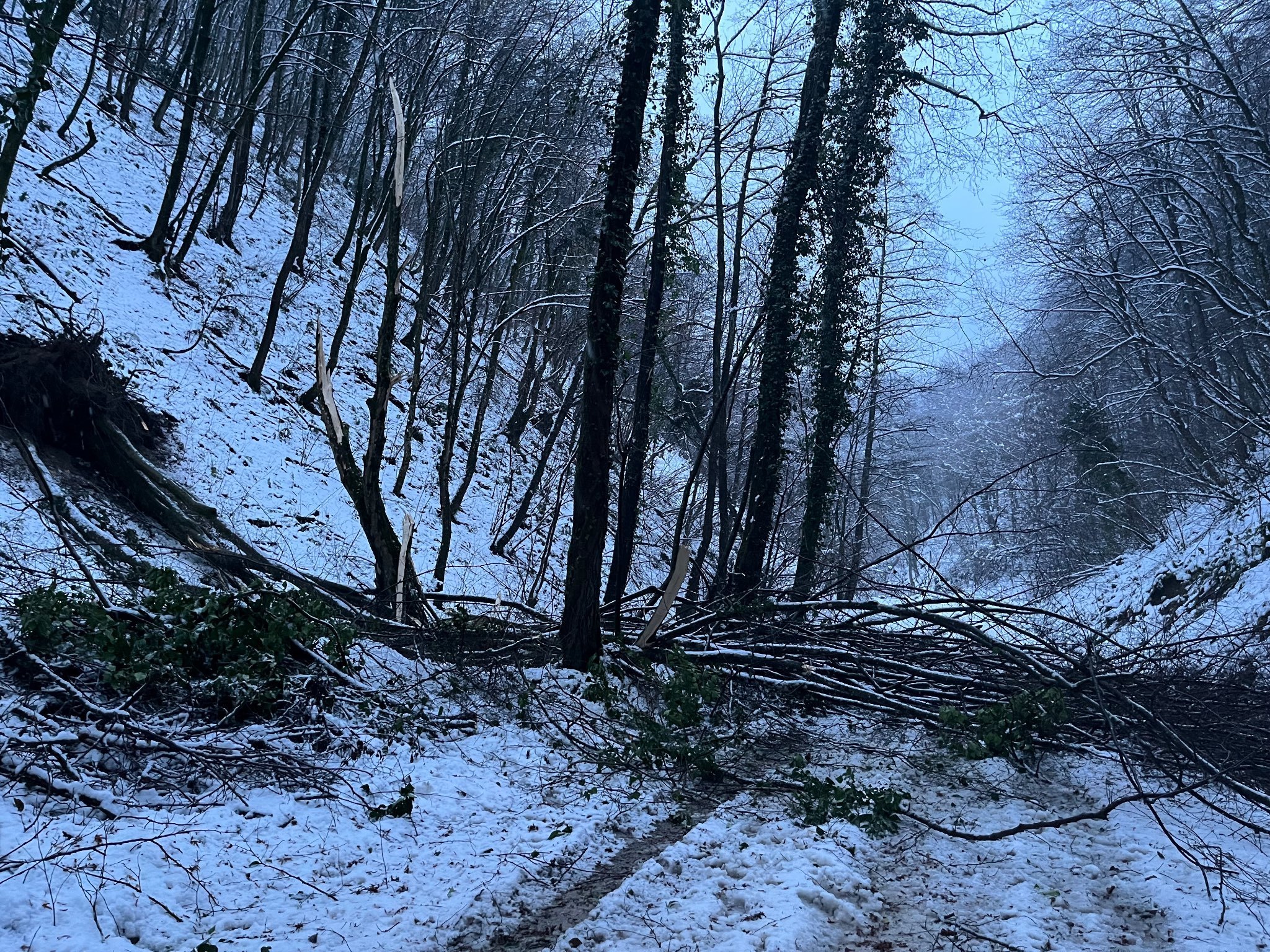 Vjerojatno se stablo izvalilo pod teretom snijega u badnjoj noći. Cesta je na tom dijelu neorohodna i za pješake i za vozila