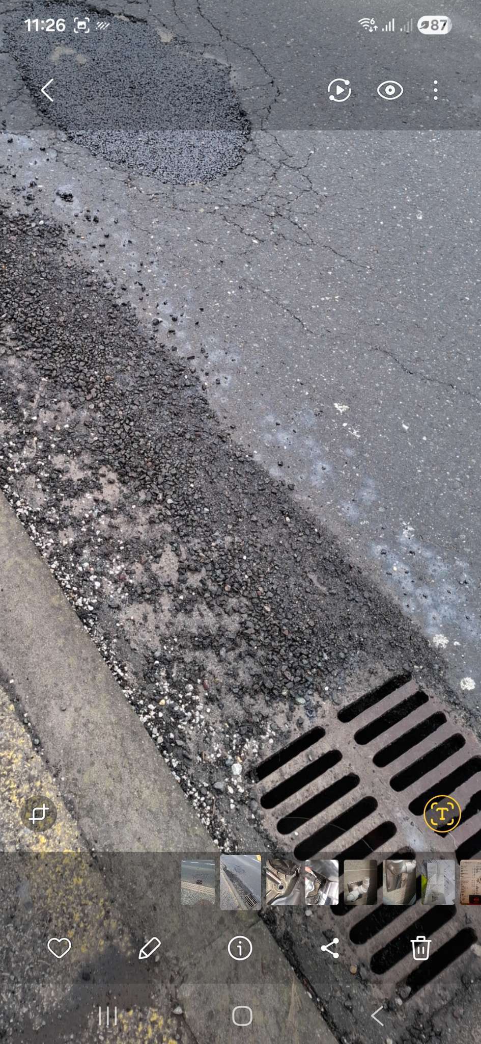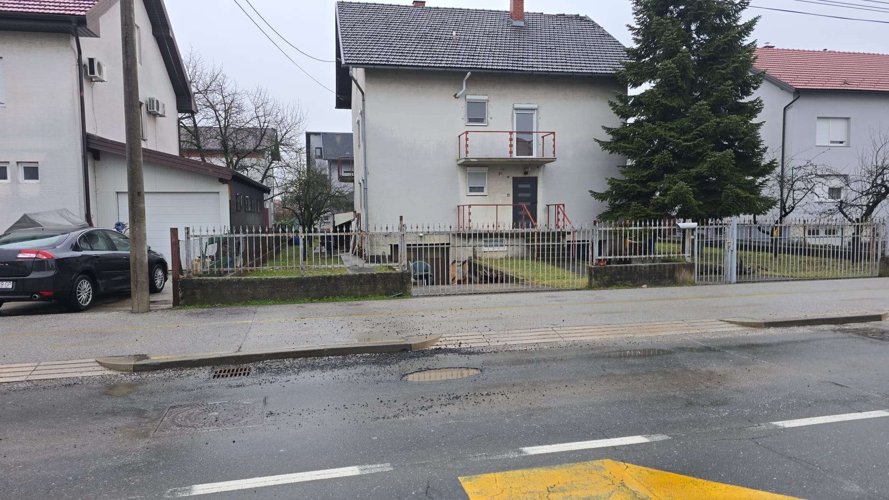 Ogromna rupetina ispred ispred kč broja 87,kamenje udara po pješacima,te šaht ponovno raskliman i lupa..niže prema kružnom toku još najmanje dvije slične rupe u kralja Tomislava..ophodnja ceste se vozila par puta i ništa..bio niže znak za oštećenje..no maknut sa ceste...