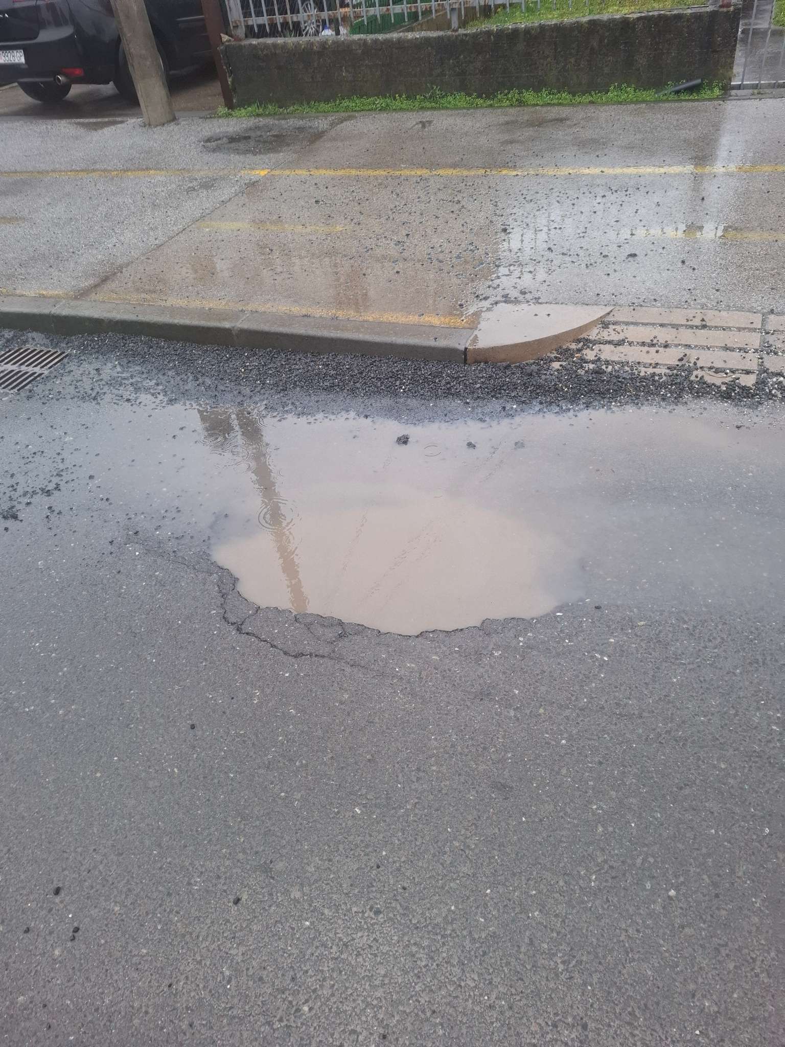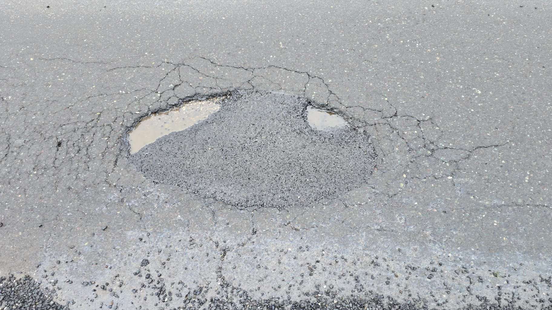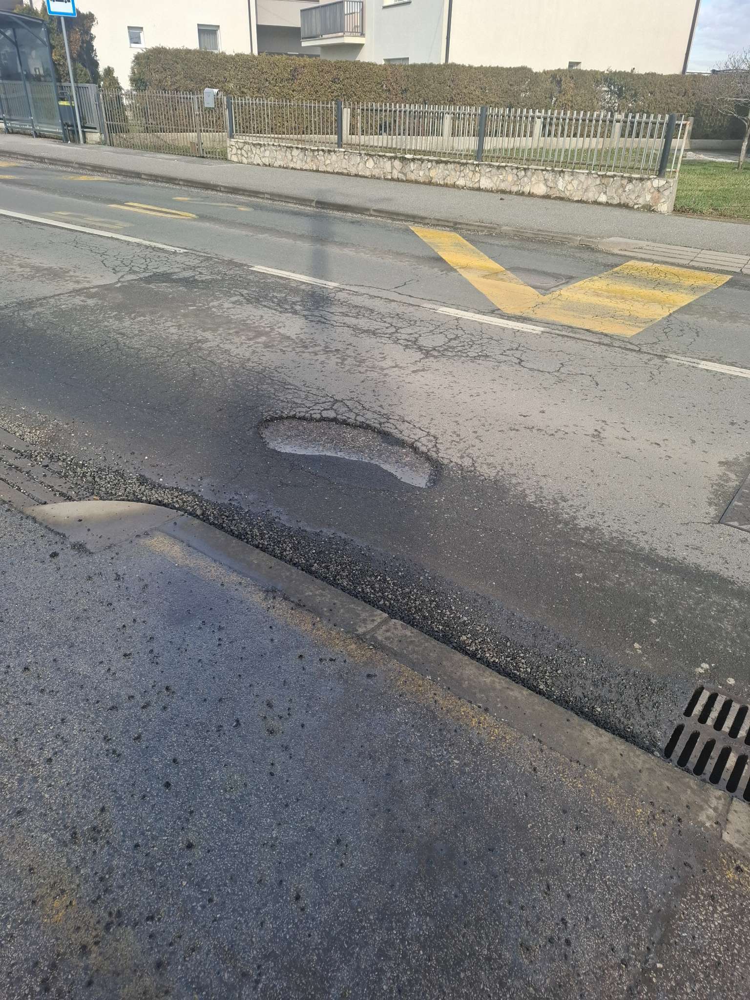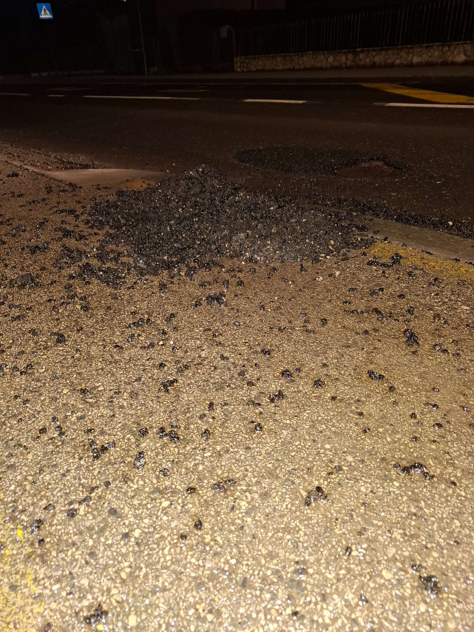 Pokrpano danas neadekvatno na mokru podlogu lopatarenjem..zakrpa vec propala u odnosu na cestu..oko zakrpe ispucan asfalt koji ce se opet izvaliti za par dana..zakrpa niža od šahta..a asfaltno kamenje ne očišćeno..te opet gađa pješake pd kotačima auta..a kamenje sve rasipano do odvoda vode..pa nema ni koliko toliko odvodnje...slična stvar 15 metara dalje na kč broj 83...